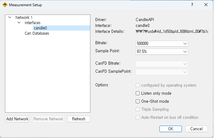 Measurement - Start Measurement (F5) 를 선택 하면 연결된 장비가 보인다. 장비는 별도 드라이버를 깔지는 않았다.