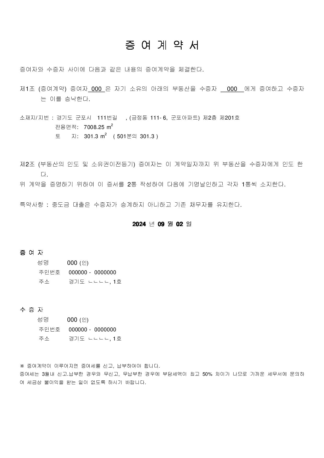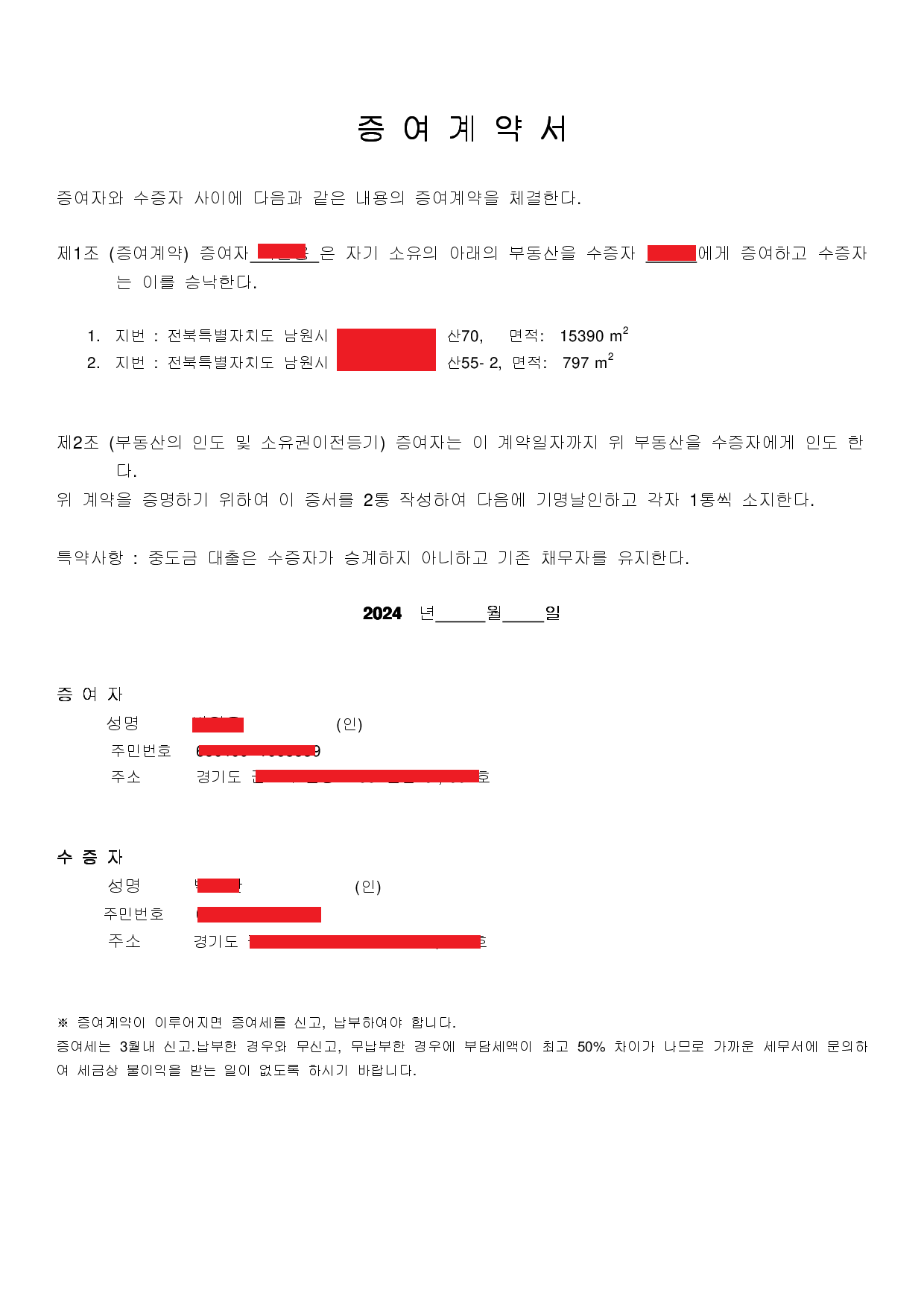 1. 증여 계약서 작성 및 검인 == 본 글 https://bahk33.tistory.com/145