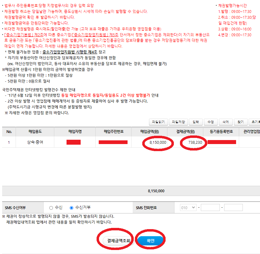 - 매입(혹은 즉시 되팔고)뒤 반드시 "채권번호" 를 기억하여 등기때 적어야 합니다.