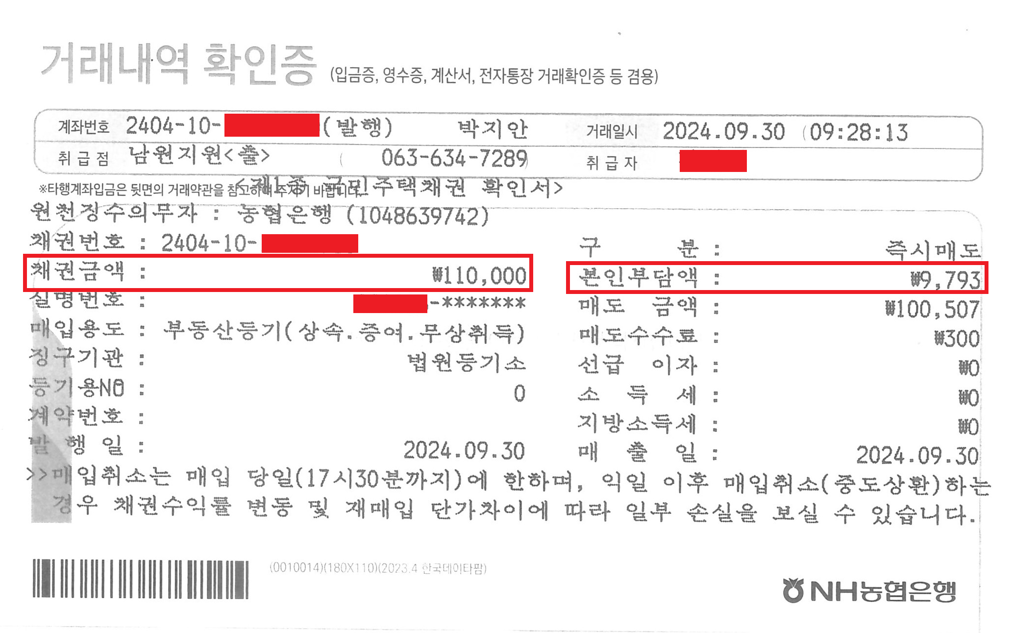 > "채권 번호"는 등기 신청때 기록 해야 하니 잘 적어 놓으셔요