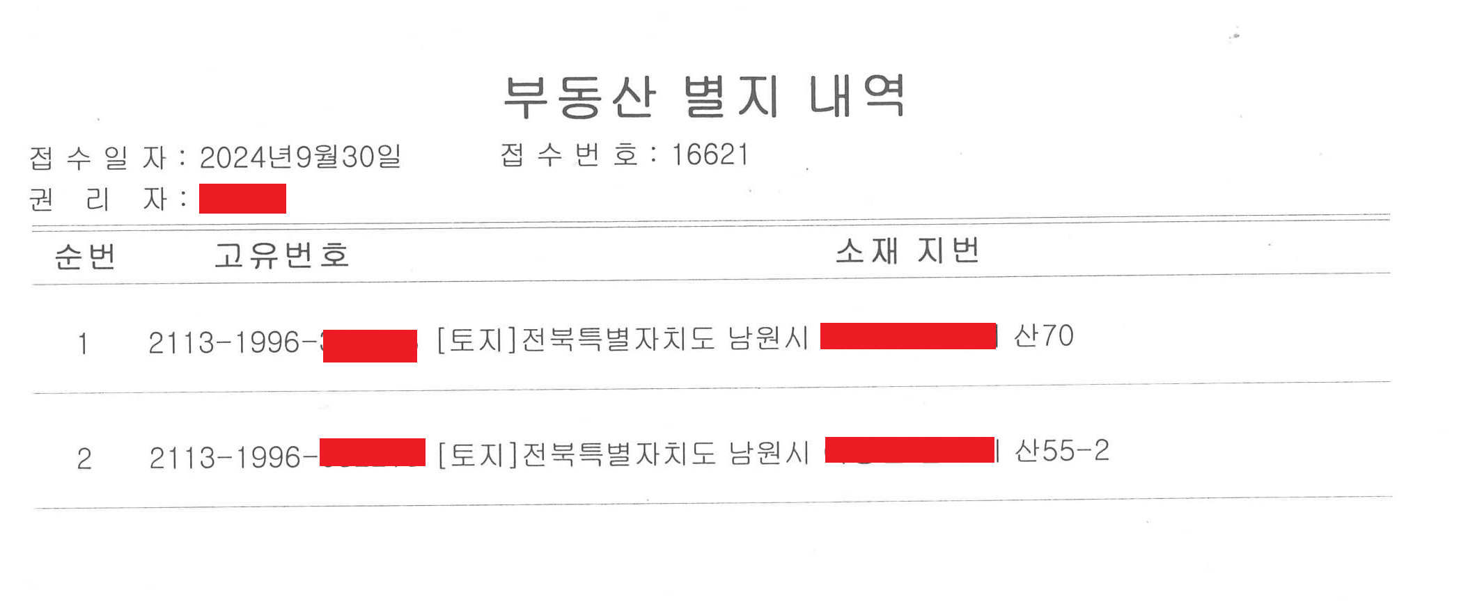 2. 별지 1 - 부동산 목록 : 1 곳( 필지 ) 가 아니라 2개 이상이면 별지가 붙네요