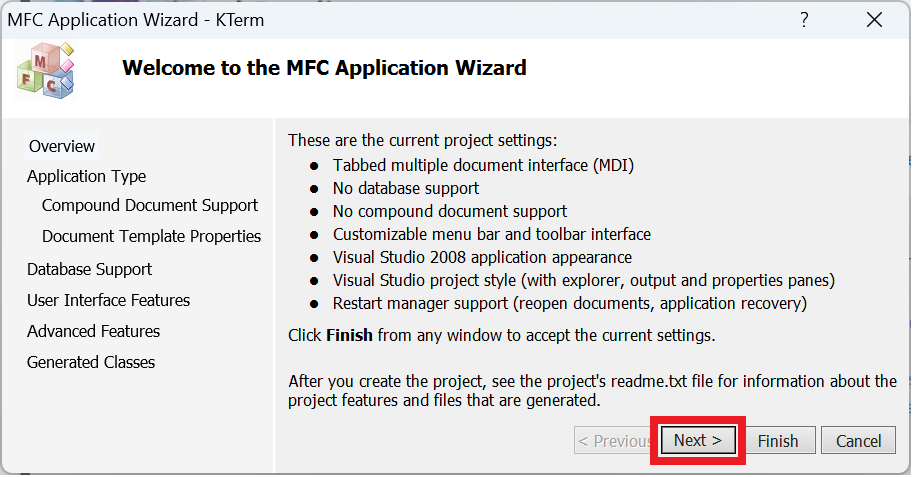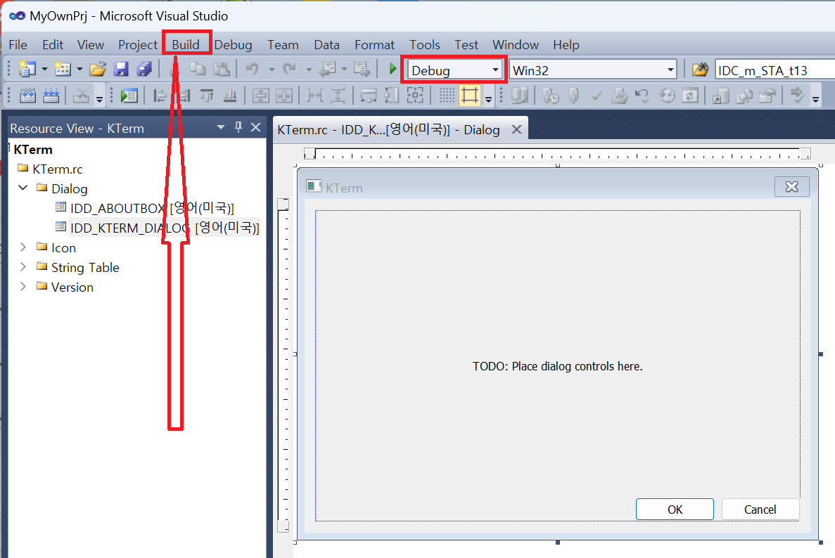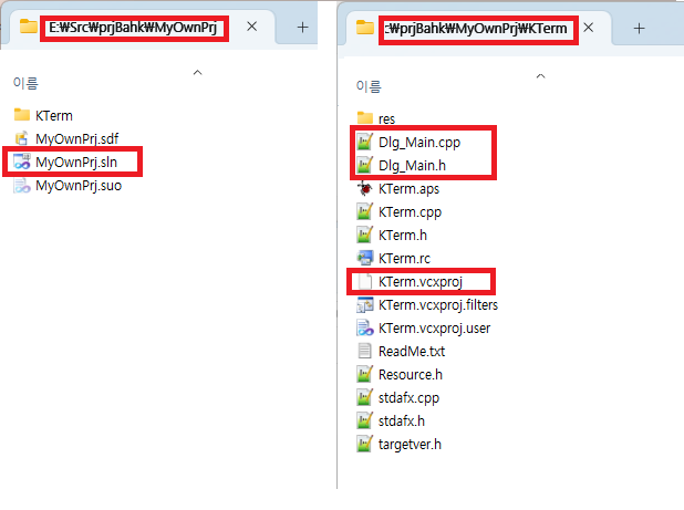 - 솔루션 디렉토리에 있는 2개 파일 ~.sln, ~.suo 를 프로젝트 디렉토리 ~/KTerm 으로 옮기고, 사용 합니다 .