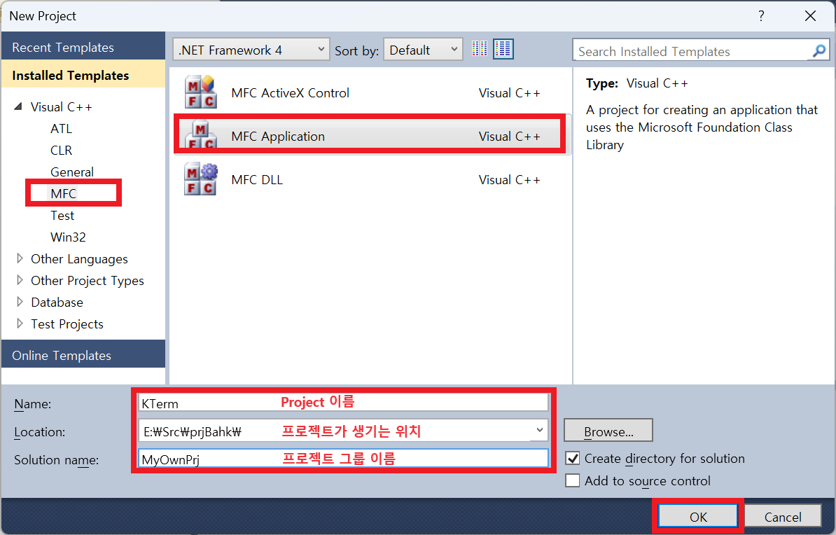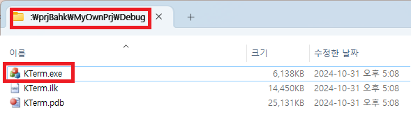 > 만들어진 실행 파일은 "E:\Src\prjBahk\MyOwnPrj\Debug" 에 들어 있다