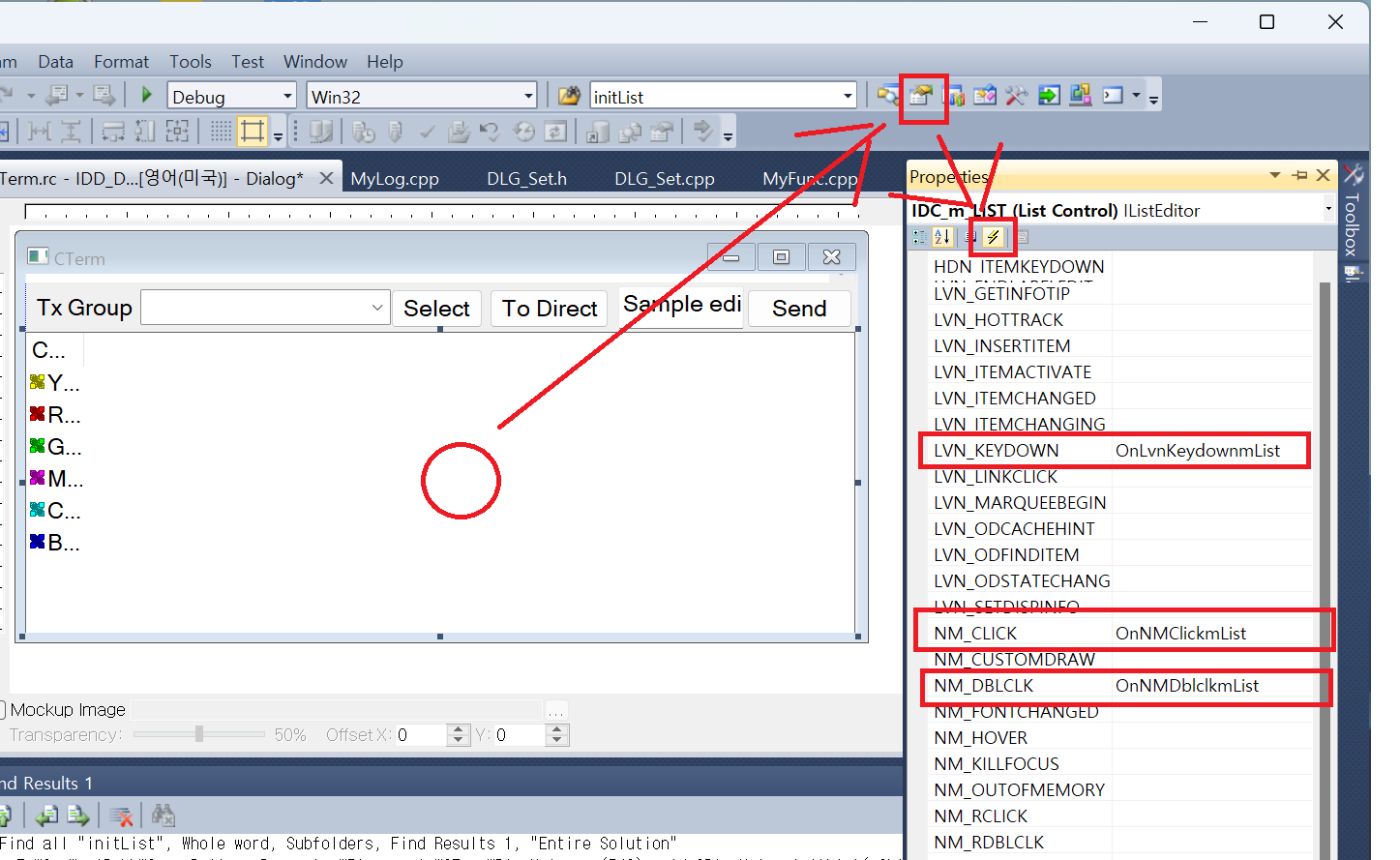 - NM_CLICK, NM_DBLCLK, LVN_KEYDOWN 를 추가한다