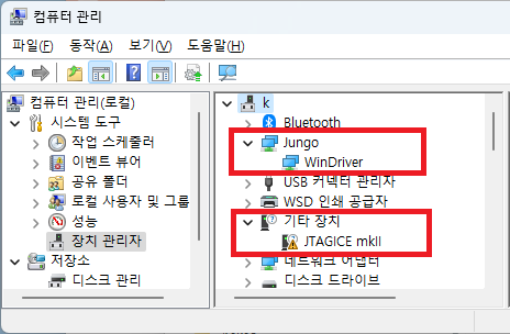 3. JTAG ICE mkII 를 연결 하고, 관리자 창을 보면,