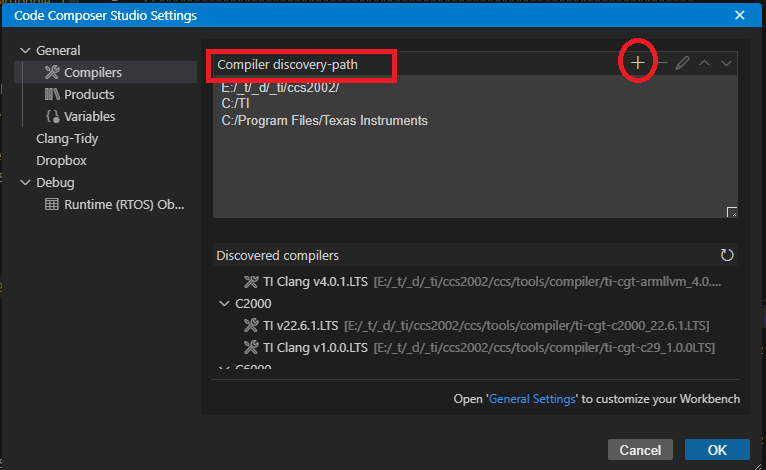> "Compiler discovery-path" ( compiler 찾을곳 ) 에서 " + " 눌르고
