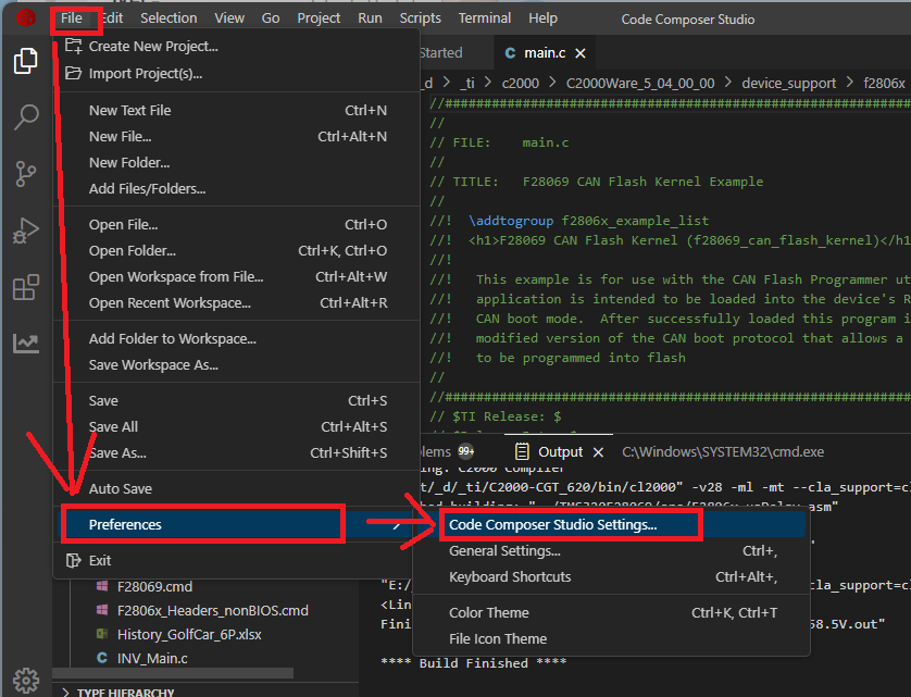 > CCS 실행 > File > Preferences > CCS Settings