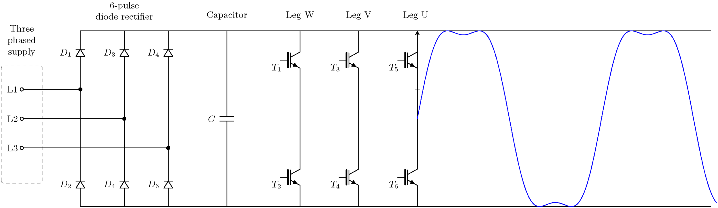 - 3상 공급 장치 및 3상 다이오드 정류기.