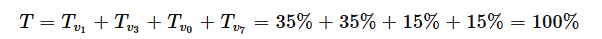 T= Tv1 + Tv3 + Tv0 + Tv7 = 35% + 35% + 15% + 15% = 100%