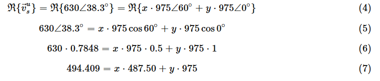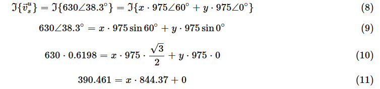 - 드라이브가 38.3° 각도에서 630V의 전압 벡터를 변조해야 한다고 가정 한다면.