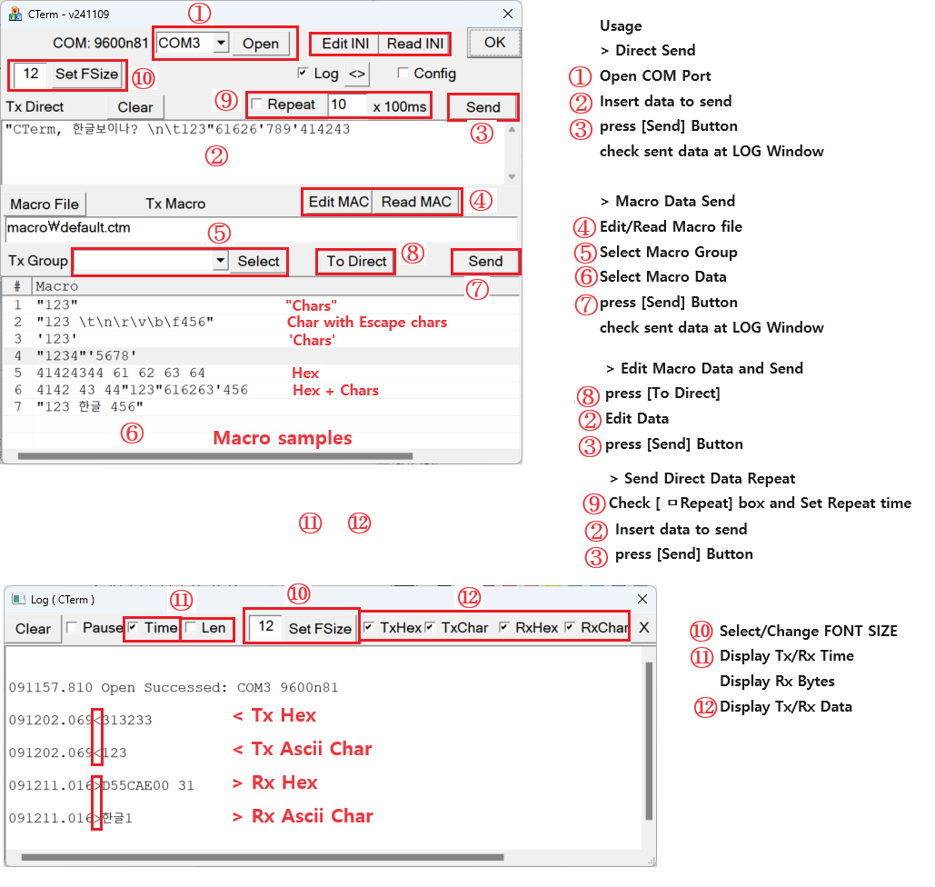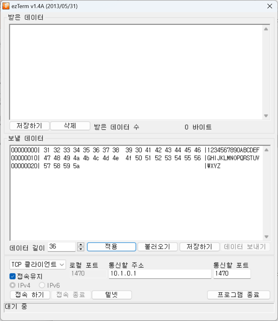 >. 송수신 데이타는 기본적으로 Log 창으로 보이고, 동시에 파일로도 저장 가능 합니다.