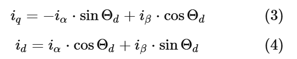 iq, id 는 토크를 생성하는 DC 전류와 필드를 생성하는 DC 전류입니다. Θ 는 로터 각도입니다.
