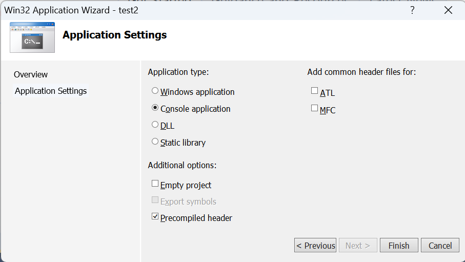 1) Visual C++ 에서 win32 를 선택, win32 console Application 선택