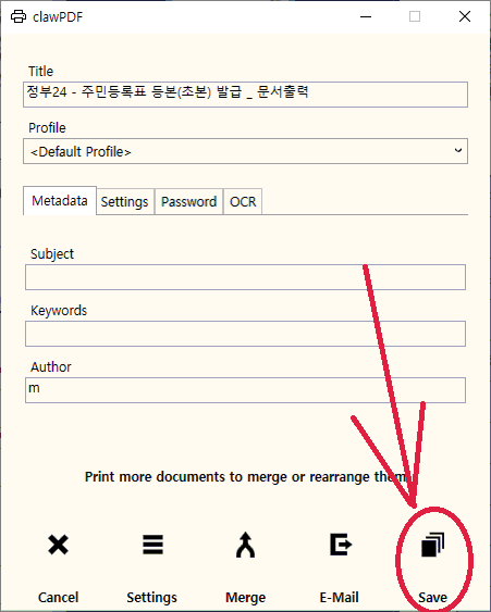 마지막으로 이거 clawPDF 를 쓰고 있읍니다.