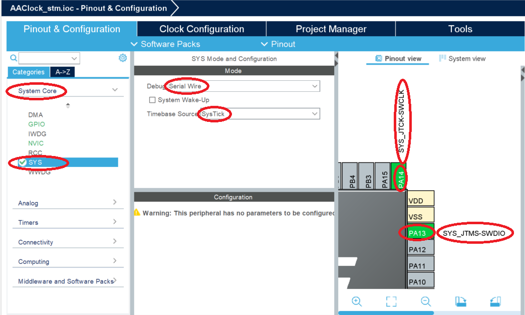 -- MCU PA13, PA14 가 변경 됨을 볼 수 있다.