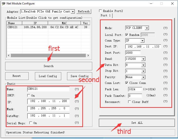 1. NetModuleConfig.exe를 실행하여 다음과 같이 모듈 매개변수를 설정합니다.