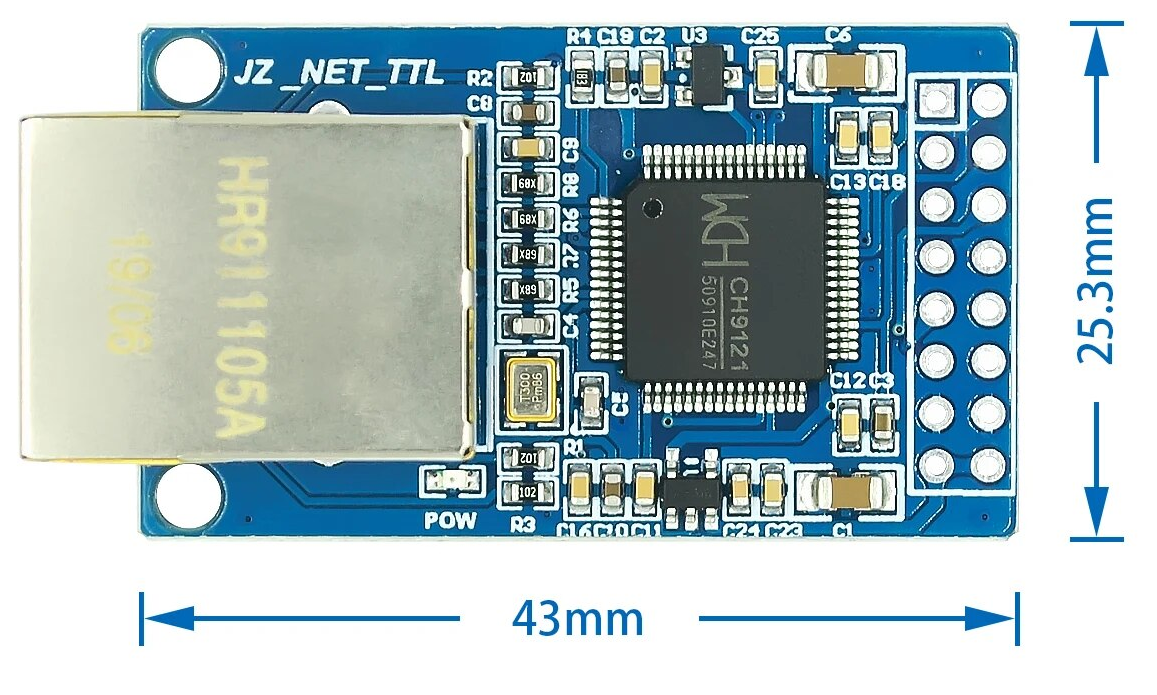 - 호스트 컴퓨터 소프트웨어 또는 UART 명령을 통해 칩 작동 모드, 포트, IP와 같은 네트워크 매개변수 구성.