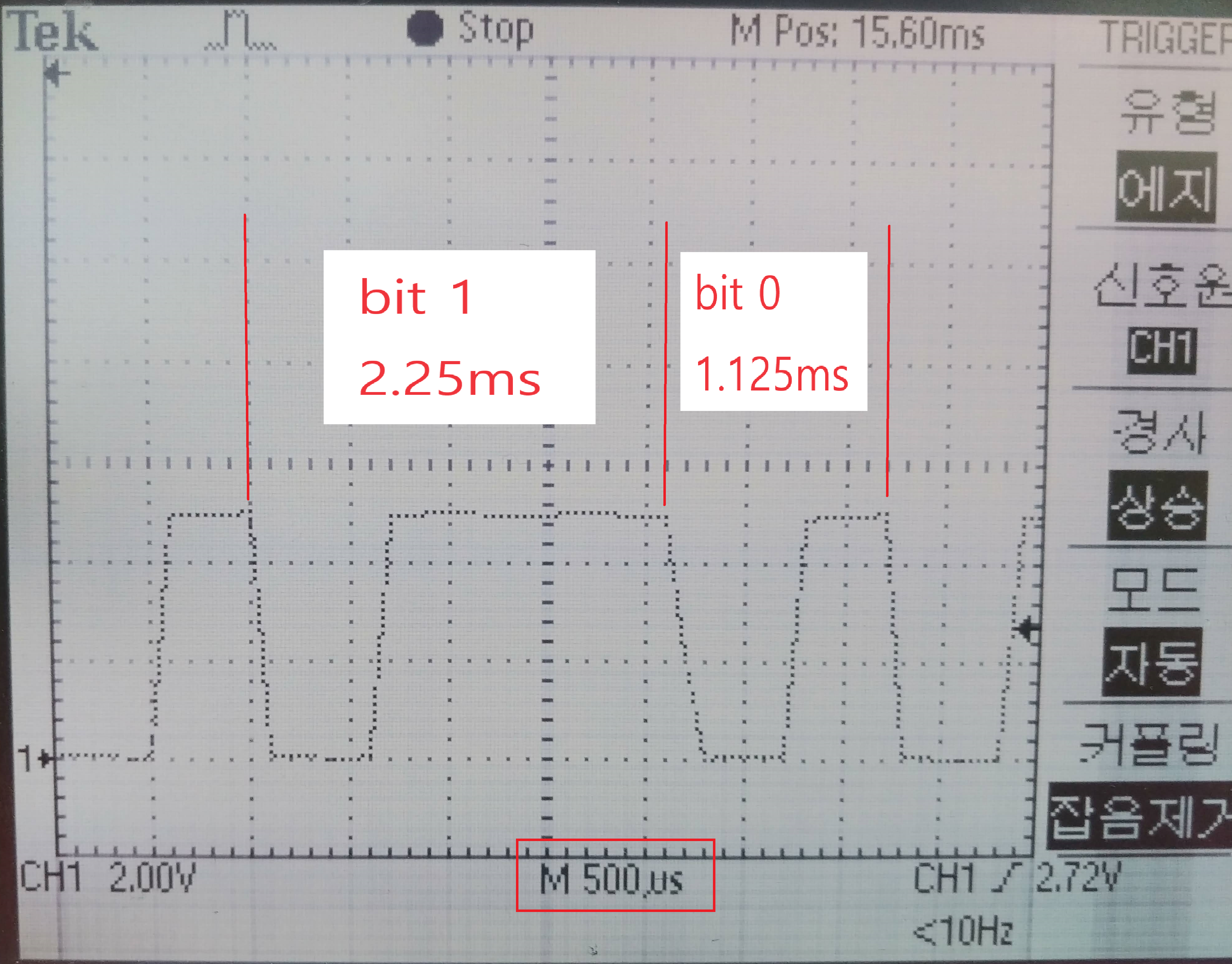 bit 가 1 일때 2.25ms 가 2133 비슷한 값이 들어 오는 것을 볼 수 있다.