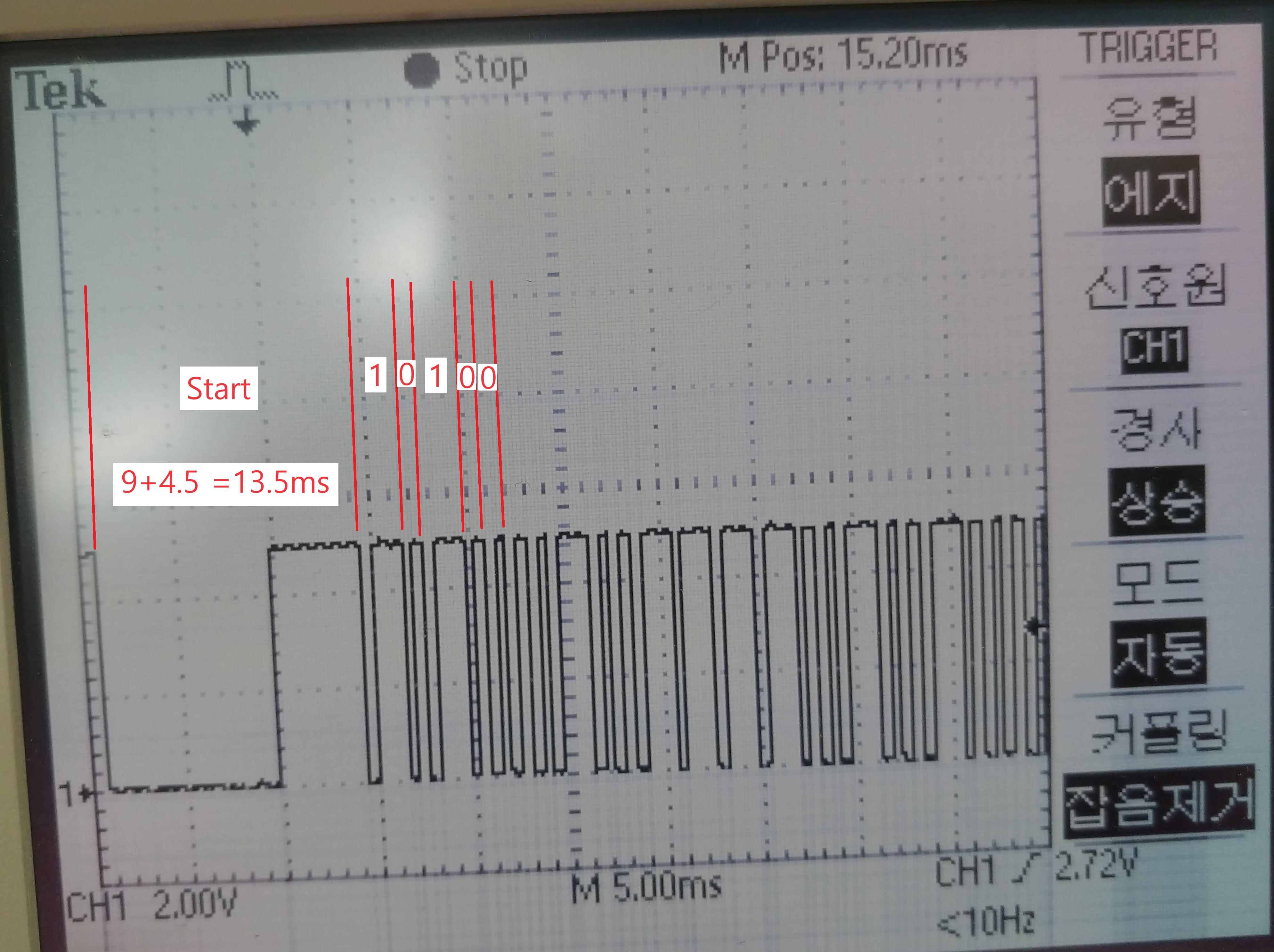 시작 은 13.5ms 가 13570 비슷한 값이 들어 오고