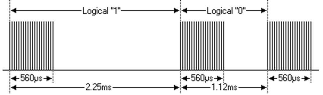 데이타 = 8 x 4 data bit , bit 가 0 이면 1.125ms, 이고, bit 가 1이면 2.25ms 이다.