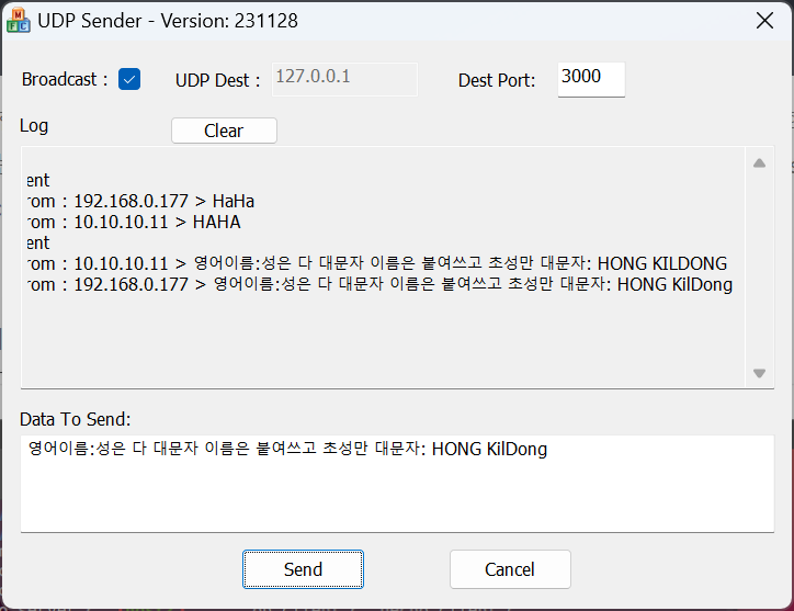 보낼때마다 포트 열지 않고 , 한 번 연다음 계속 보낼때는 받기 스레드 해도 잘 안되드만,