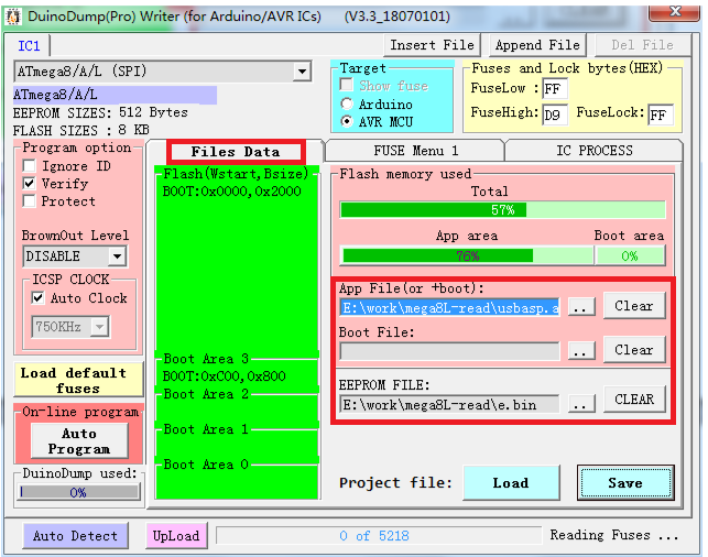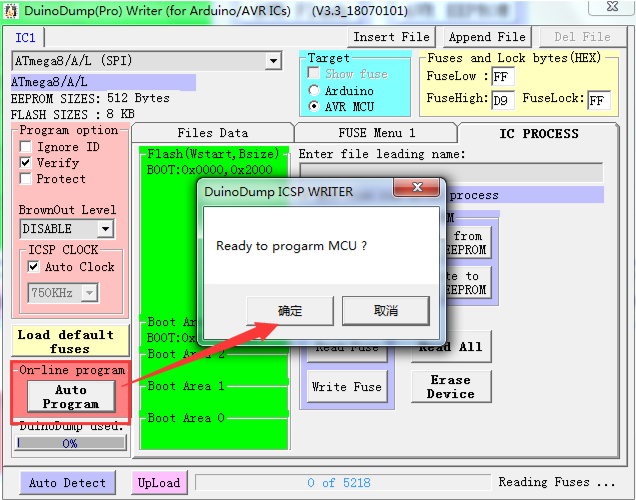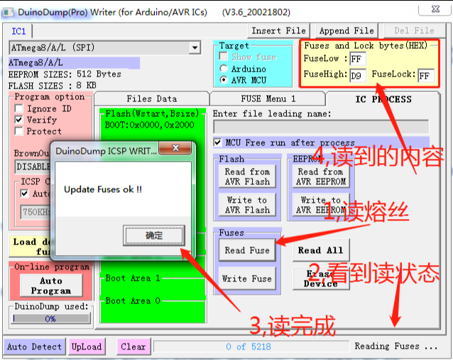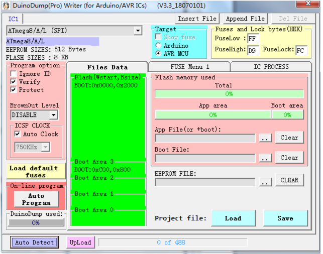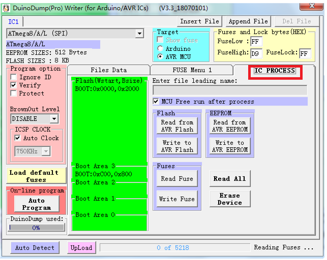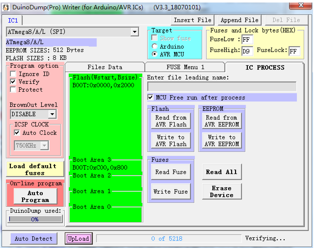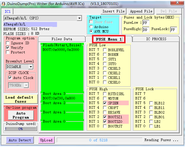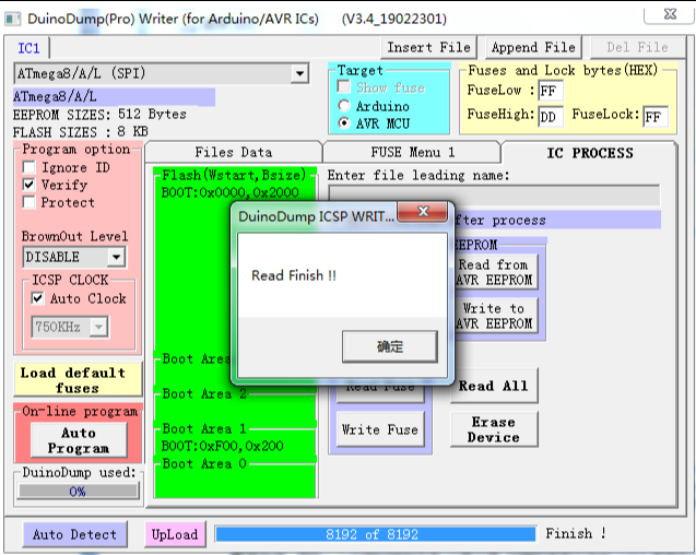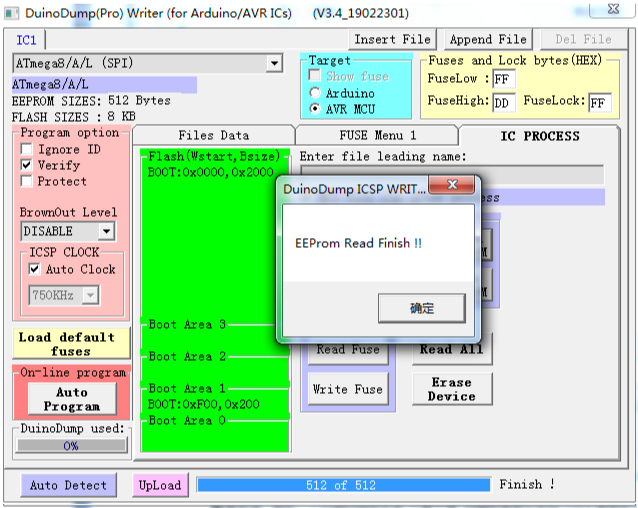 到这里就可以读取 FLASH 或 EEPROM 及 Fuse 的内容。
