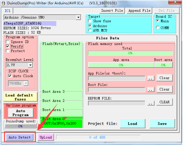 点 auto detect 即可以识别出芯片型号 칩 모델을 식별하려면 자동 감지를 클릭하십시오.