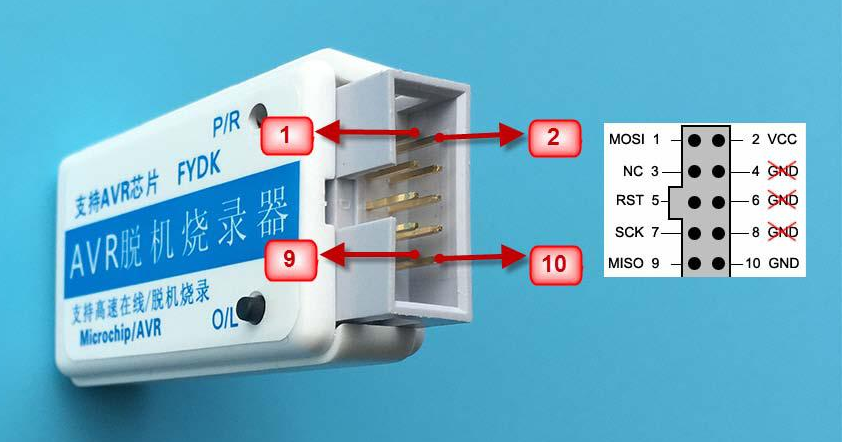 AVR 10 针标准输出口如下: AVR 10 핀 표준 출력 포트는 다음과 같습니다.