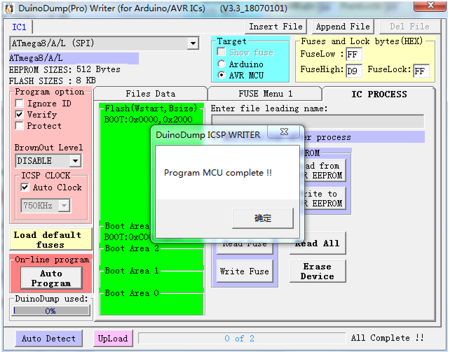 下方进度条显示写 FLASH,EEPROM,FUSE 等操作,直到完成。