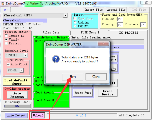 UPLOAD 把 FLASH,EEPROM,FUSE 等上传到脱机烧录器中。。